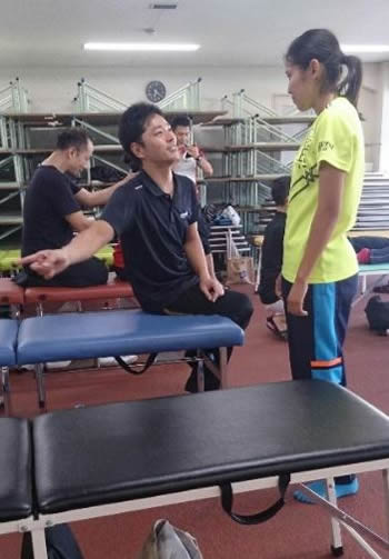 スポーツ選手の大会に会場まで同行し、張った筋肉をほぐすなど、最高のコンディションでベストが出せるように協力させていただいています。